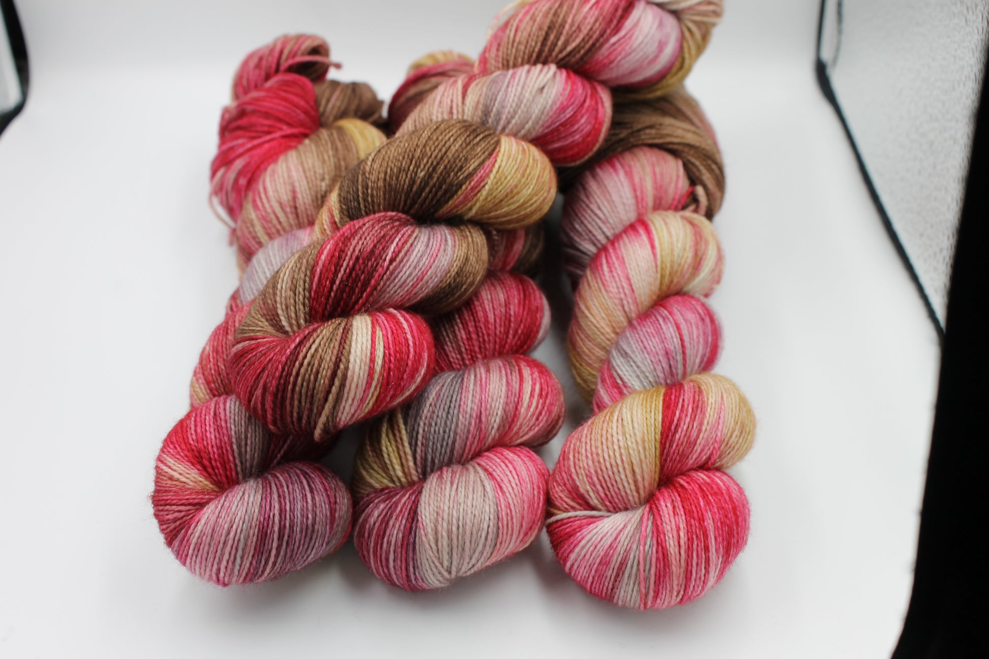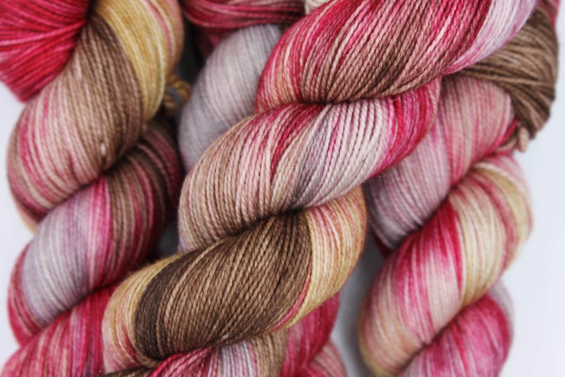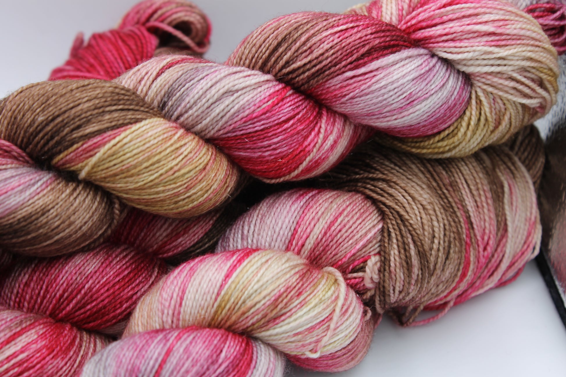 Sparkling Robin Sock 75% Superwash Merino 20% Nylon 5% Silver Stellina. 1 x 100g Skein Each skein sports a range of complimentary colours swirled throughout the yarn. Hand dyed sock yarn Approximately 425m per 100g skein 75% SW Merino 20% Nylon 5% Silver Stellina Each skein is hand-dyed using professional acid dyes. Although each skein is dyed in a batch unique they will remain and no other skein will ever be quite like it. Every effort has been made to wash any excess dye from the yarn, but some may remain; especially with heavy colours. It is recommended to hand wash separately. Shape the products made from this yarn whilst damp and dry flat. Colour represented on a screen can vary from the colour of the yarn supplied although we have made effort to ensure accuracy. Shipping information please read: Standard shipping is second class and does not include tracking or insurance. We use waterproof biodegradable packaging. If you have any questions please feel free to email me.